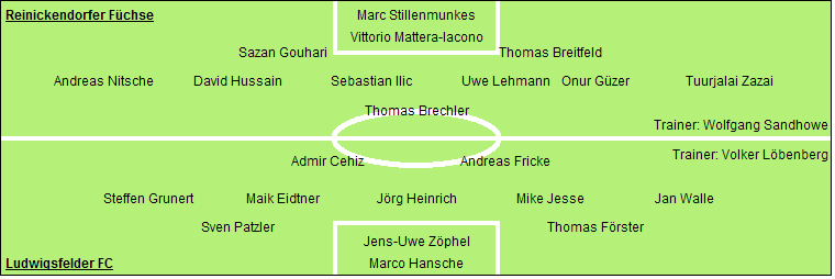 Ludwigsfelder FC: Marco Hansche - Jens-Uwe Zöphel - Thomas Förster, Sven Patzler - Jan Walle, Mike Jesse, Jörg Heinrich, Maik Eidtner, Steffen Grunert (53. Thomas Welskopf) - Andreas Fricke, Admir Cehiz (72. Frank Ruprich)