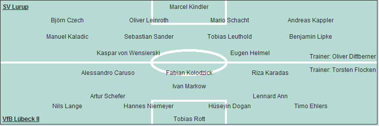 SV Lurup: Marcel Kindler - Björn Czech, Oliver Leinroth, Mario Schacht, Andreas Kappler - Manuel Kaladic, Sebastian Sander, Tobias Leuthold (67. Gian Pierre Carallo), Benjamin Lipke - Kaspar von Wensierski, Eugen Helmel (88. Stefan Wehrheim)